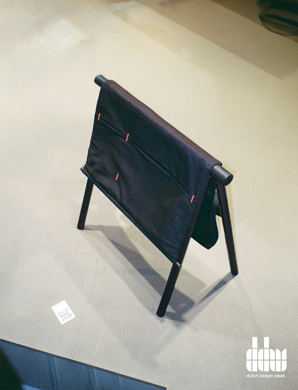 The third concept is based on a sturdy wooden frame, over which a continuous fabric is draped. The connec-tion between the wood and fabric is secured by magnets integrated into both materials, providing an invisible yet strong hold. The fabric allows items to be discreetly concealed and hidden. Through a simple folding of the fabric, pockets are formed, which are connected by just four precise seams, fully enveloping the stored items.